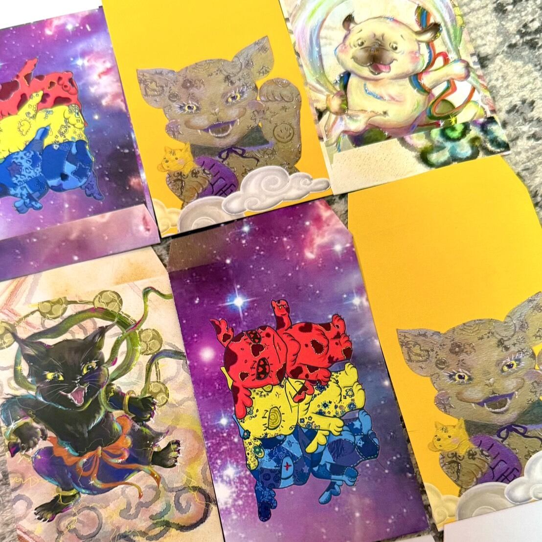 *招き猫 *ムータ *風神雷神 三枚セットのポチ袋です。 蓋を閉めた状態で縦10.8㎝×横6.8㎝
